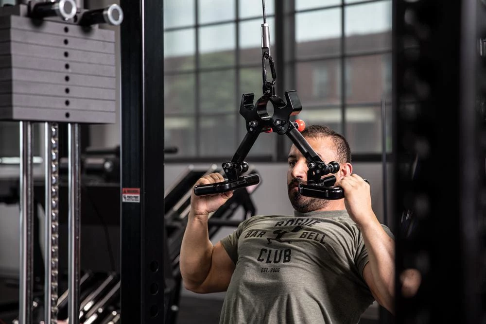 As the name suggests, the Back Widow is designed, first and foremost, as a back blaster, with easy set-ups for high/mid/low range cable pulls and T-bar rows. The same device works equally well as a cable attachment for biceps and triceps work; as a pull-up bar attachment for neutral grip pull-ups; or as a dumbbell attachment for dumbbell rows. Many users even adopt the Back Widow as their primary bar-jack: the moving parts are all at a 16,000 LB sheer test, so no weight load threatens the Widow’s overall structural integrity.