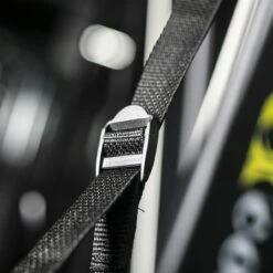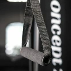 Designed specifically for use with the Concept 2 SkiErg—an industry leading Nordic skiing machine—the extension kit features (2) polypropylene webbing straps with a loop on one end and a handle on the other. The loops cinch around the bottom of the existing SkiErg grips, while the adjustable handle portion of the straps hang down to a max extension length of 28″ from the standard grips. Each 1.125″ (handle) diameter handle includes a foam outer layer for comfort, and can be easily tightened/loosened so that athletes with limited dexterity can still pull the device with little to no grip strength required.