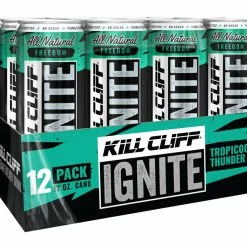 Kill Cliff Ignite is available here in a delicious Tropicool Thunder flavor and is sold in a convenient 12-pack. Each 12 fl. oz. can (355 ML) contains just 25 calories, with no sugar, GMOs, dairy or gluten. Used before a workout or a long day at the office, etc., Ignite delivers efficient hydration and energy, and is fully Keto / Paleo / Vegan friendly.