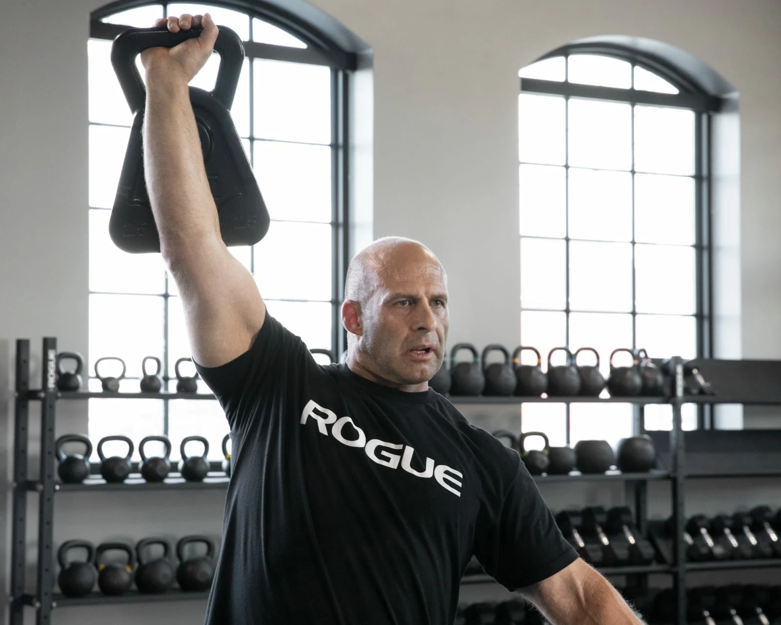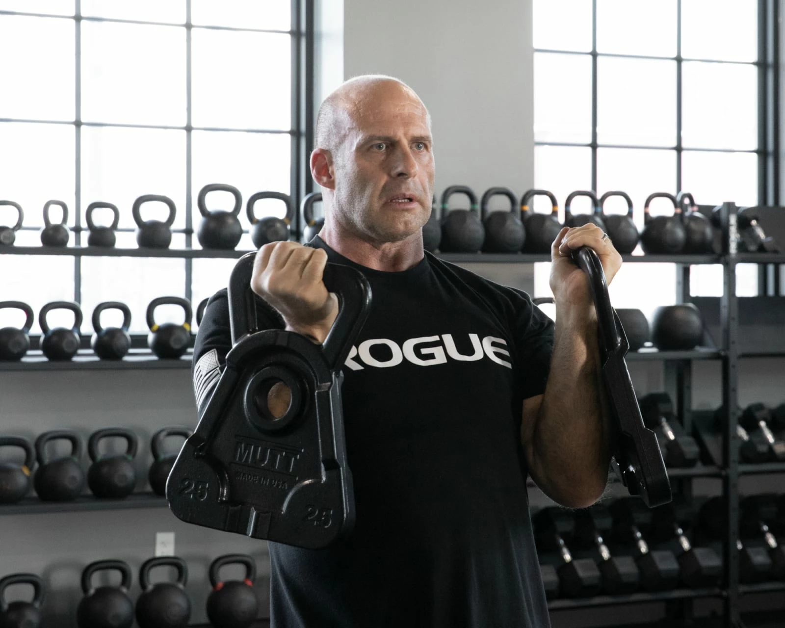 The integrated handle of the Mutt Cowbell gives it additional dual functionality off the bar, as it can be used for kettlebell exercises such as swings, farmers carries, and shrugs.
