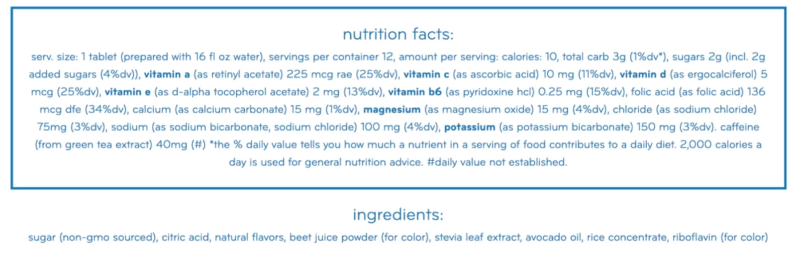 Nuun Vitamins is another specialty drink mix supplement from the company that innovated the sugar-free electrolyte tablet. Available here in Blackberry Citrus flavor, each Nuun tablet contains 11 vital vitamins and minerals athletes need, plus the optimal balance of electrolytes for everyday activity.