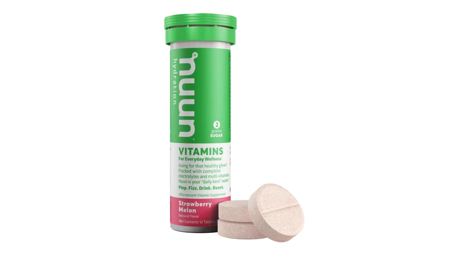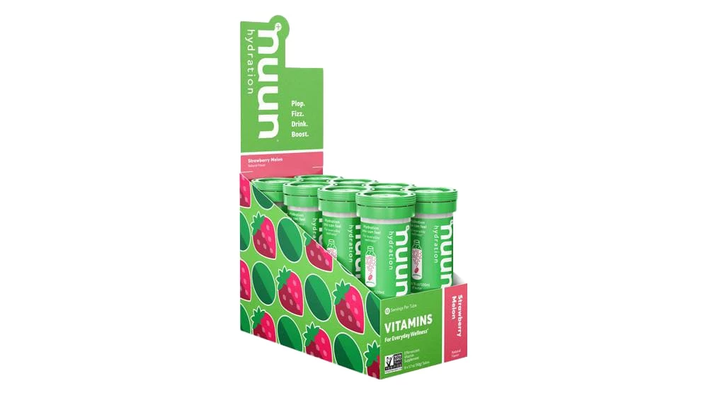 Nuun Vitamins is another specialty drink mix supplement from the company that innovated the sugar-free electrolyte tablet. Available here in Strawberry Melon flavor, each Nuun tablet contains 11 vital vitamins and minerals athletes need, plus the optimal balance of electrolytes for everyday activity.