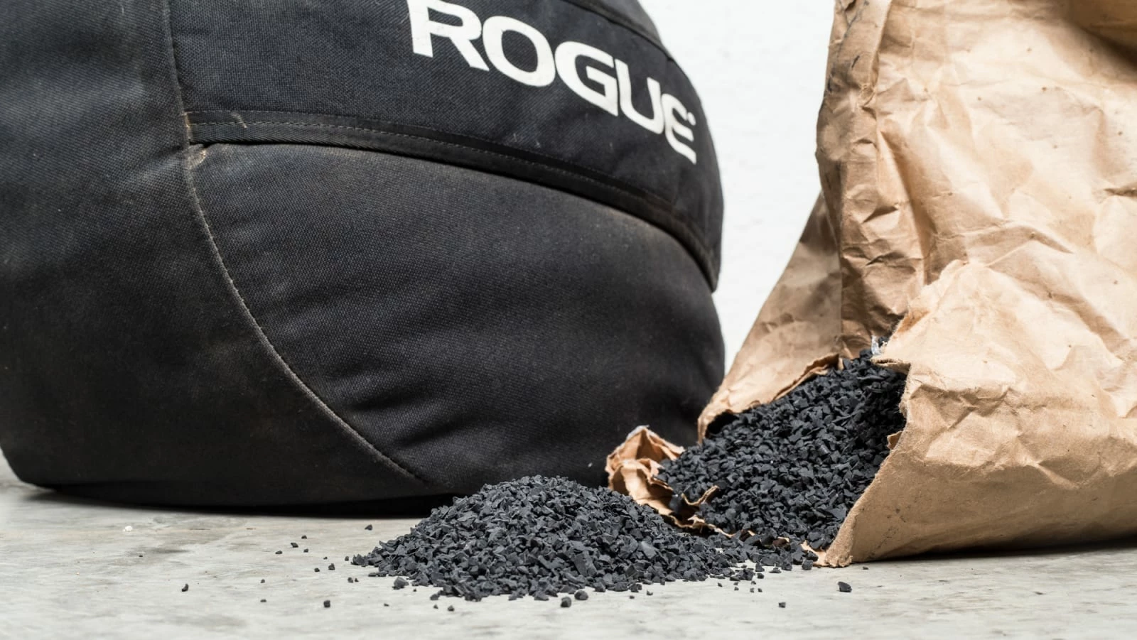 Rogue is now offering 55 LB sacks of crumb rubber in 1mm to 3mm granules. This quality fill material—an industry standard—is suitable for use with a wide range of products. For small garage gyms and larger training facilities, alike, buying fill materials in bulk can offer much greater preparedness and flexibility when setting up or customizing sandbags, loadable mallets, etc.