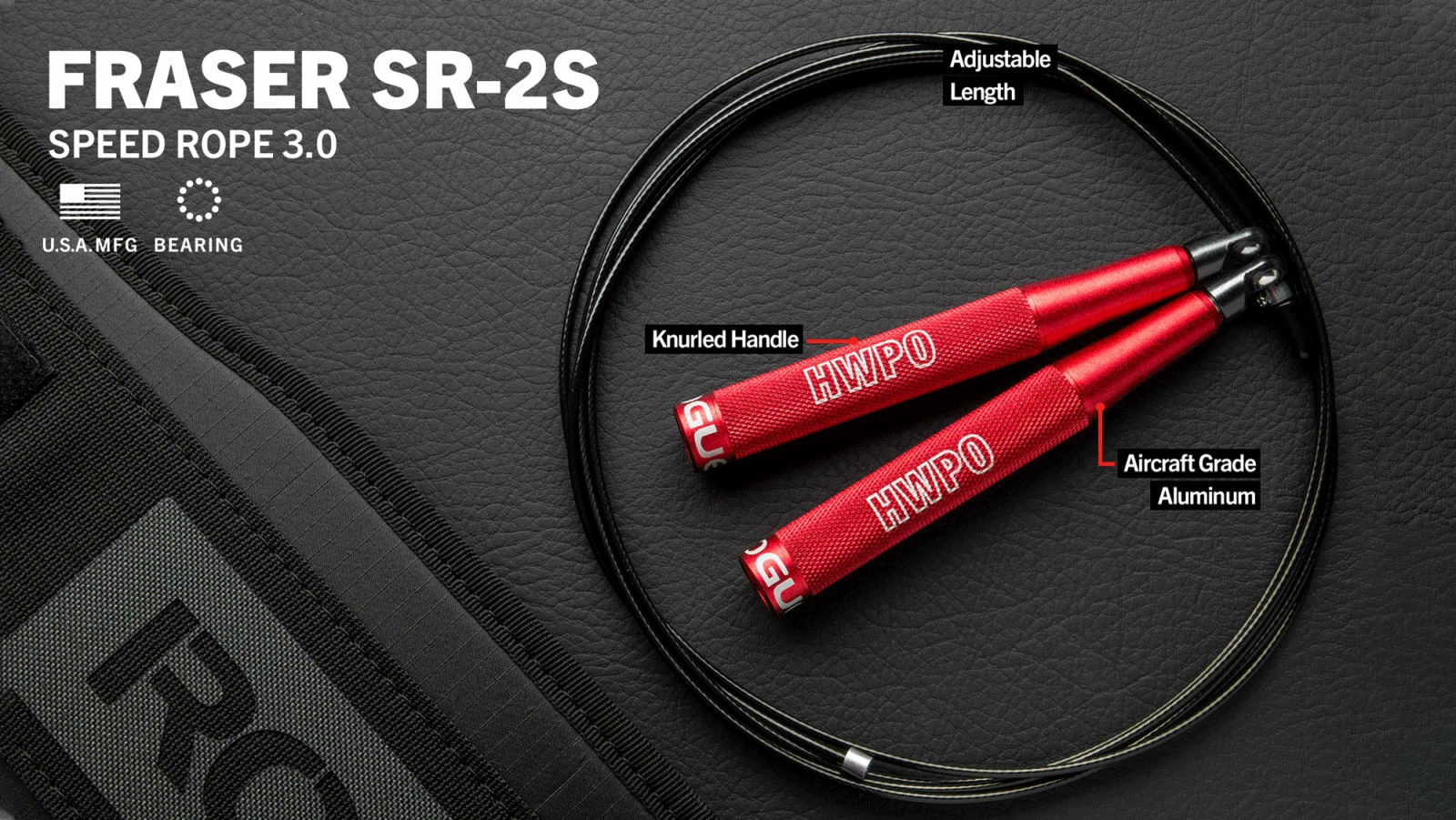 This special edition of the short-handle SR-2S Bearing Speed Rope is inspired by five-time “Fittest Man on Earth” and longtime Rogue athlete, Mathew Fraser. The custom design includes a red anodized handle with a laser etched HWPO (“Hard Work Pays Off”) logo on the knurl, and a nylon-coated 2.3MM black cable.