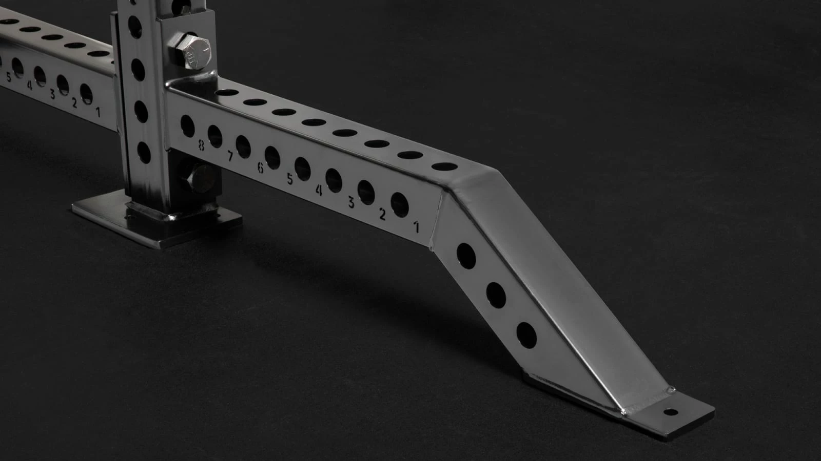Built with 90″ uprights at the back of the unit and 100″ uprights in the front, the Rogue Monster Collegiate Half Rack utilizes new angled crossmembers to produce a finished look at the top of the rack with added height in front for pull-ups. We’ve also included longer 30″ front feet, which provide additional stabilization and allow athletes to perform band work without having to be inside the rack itself.