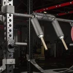 This version of the Rogue Squat Handles is compatible exclusively with our Monster Series rigs and racks (a Monster Lite version is also available). Adjustable to any height using the included detent pins, these 6″ (handle) long, 1.25″ (handle) diameter handles offer athletes greater stability on safety squats, reducing stress on the shoulders and triceps while maintaining a straight spine. By keeping your hands in front of you, it also becomes easier to sit back through the movement and shift the focus to the quads, hamstrings, and glutes.