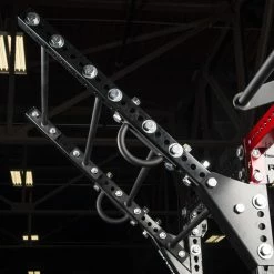 The Monster version of the Rogue Flying Pull-Up Bar mounts securely to the uprights of any existing Monster Series rig or rack (we also offer a separate Monster Lite version). Positioned at roughly a 45-degree angle, this all-in-one, 4-bar attachment functions like a heavy-duty pull-up ladder, demanding greater muscle recruitment and explosiveness from an athlete as they advance from rung to rung. The Flying Pull-Up Bar can also be used with gymnastic rings, adding the greater height often needed for better muscle-ups and other movements.