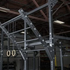 The unit is manufactured in the USA, and features the same 1.25” diameter, 43” pull-up bars that come standard with our Monster Lite rigs and racks. The four pull-up bars are connected via a set of two 3×3″ 11-Gauge Laser Cut Steel, which are secured to the rig using laser-cut and bent 0.3125″ plates. Because we’ve spaced the holes 2″ on center along the full length of the arms, users can select their own custom-spacing for the rungs. The pull-up bars, arms, and brackets are finished in our textured black powder coat.
