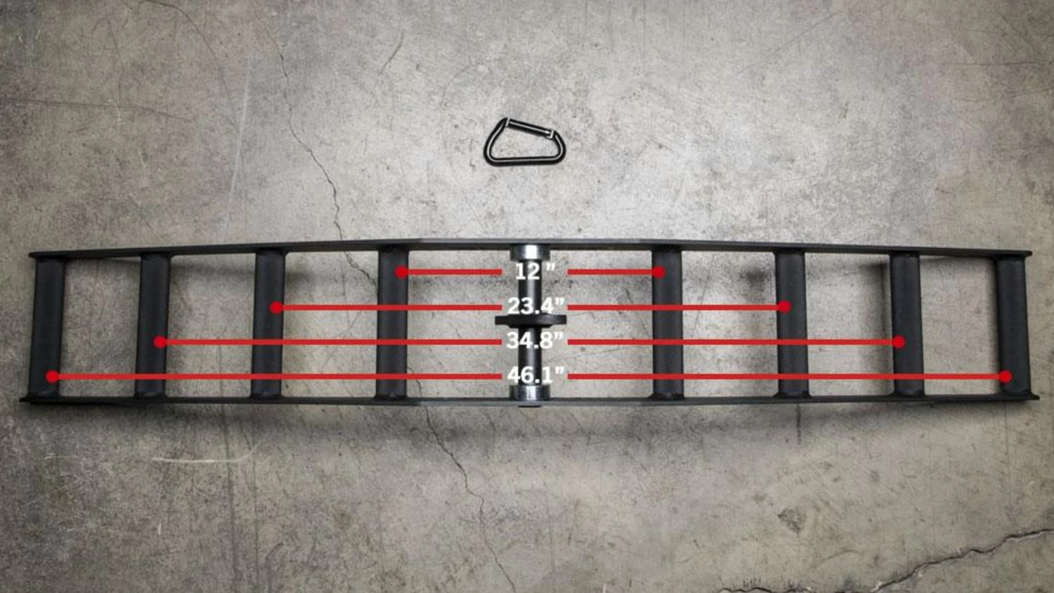Using the included carabiner, an athlete can quickly connect the attachment, then select his or her preferred neutral grip position from narrow (center handles are spaced 12” on center) out to the widest option (46.125″ on center).