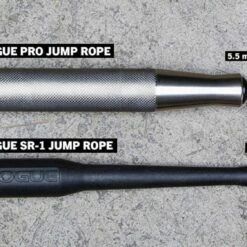 Like the the SR series, this is a precision bearing jump rope with a 360-degree swivel design for maximum rotation and superior double-unders. The handles are finished with a full-depth, fine knurl for a solid, comfortable grip, and an etched Rogue logo is also included. The cable is available in 5 fixed-length options (95″, 100″, 105″, 110″, & 115″), which you can select from the dropdown menu. Be sure to check the size chart below before choosing your rope length.