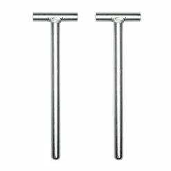 The (2) brackets are Made in the USA from 3/8″ thick laser-cut steel, and mount to the 5/8” holes at the base of an Infinity or Monster Lite squat stand. The durable wheels measure 3” in diameter. Customers have the option of adding a pair of band pegs to their order (selectable in the purchase area), which can be inserted into the front base tubes to serve as safety handles when moving the unit.