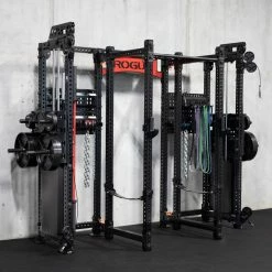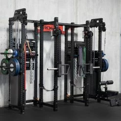 The Monster Cave is manufactured in the USA and features 3×3” 11-gauge steel with an MG Black finish, 1” Monster hardware, and laser-cut holes spaced 2” on center. Customers can select the height of the uprights (90” or 100”) and the depth and configuration of the central Fold Back Rack, which is available as either a full 4-post power rack (24” or 30” depth) with included strap safeties or a standard 2-post fold-flat (21.5” or 41.5” depth). Building on the modular design of the Reflex Racks, the Monster Cave is also compatible with multiple different storage options, from Rack Storage Panels and specialized shelves to new side side winder that make it possible to use the real estate on the outsides of the weight stack Slingers for additional storage.
