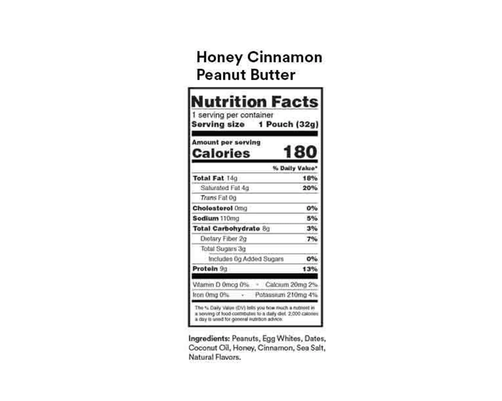 The convenient squeezable pack makes it easy to add the peanut butter as a spread or to consume it as an on-the-go snack before or after a workout. Along with the ingredients noted above, RXBar uses real cinnamon, honey, sea salt and coconut oil to bring it all together.