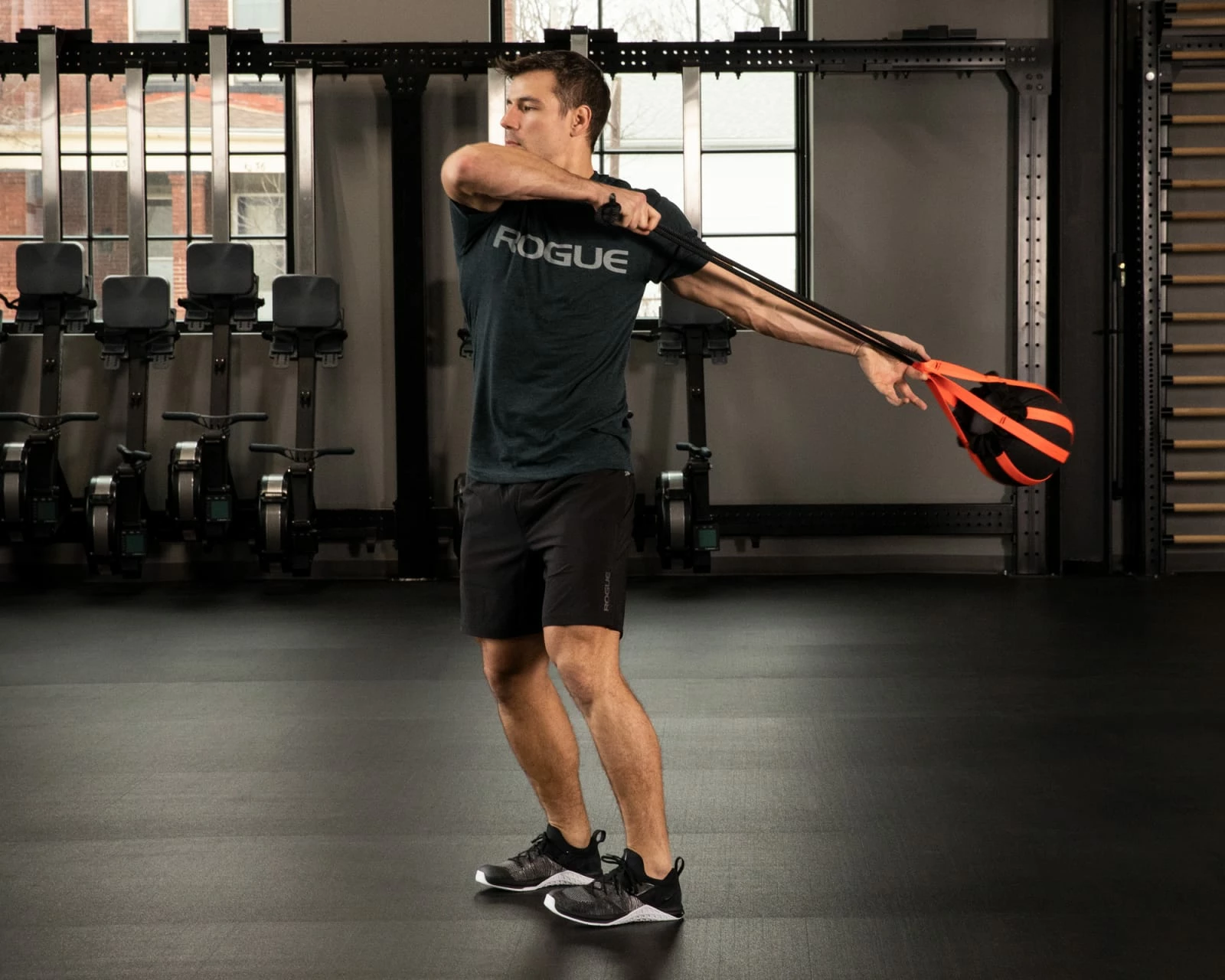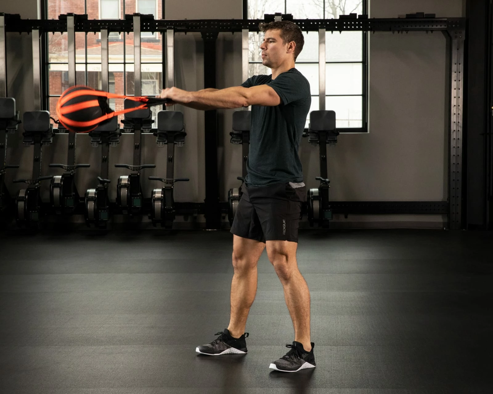 After loading in their preferred 10” medball, athletes can utilize the Tomahawk Sack to develop strength and power in the transverse plane via movements like the kettlebell swing, Russian twist, lasso, anti-rotation swing, sledgehammer, and more. You can also quickly swap out one medball with another of lesser or greater weight for more variance in the workout.