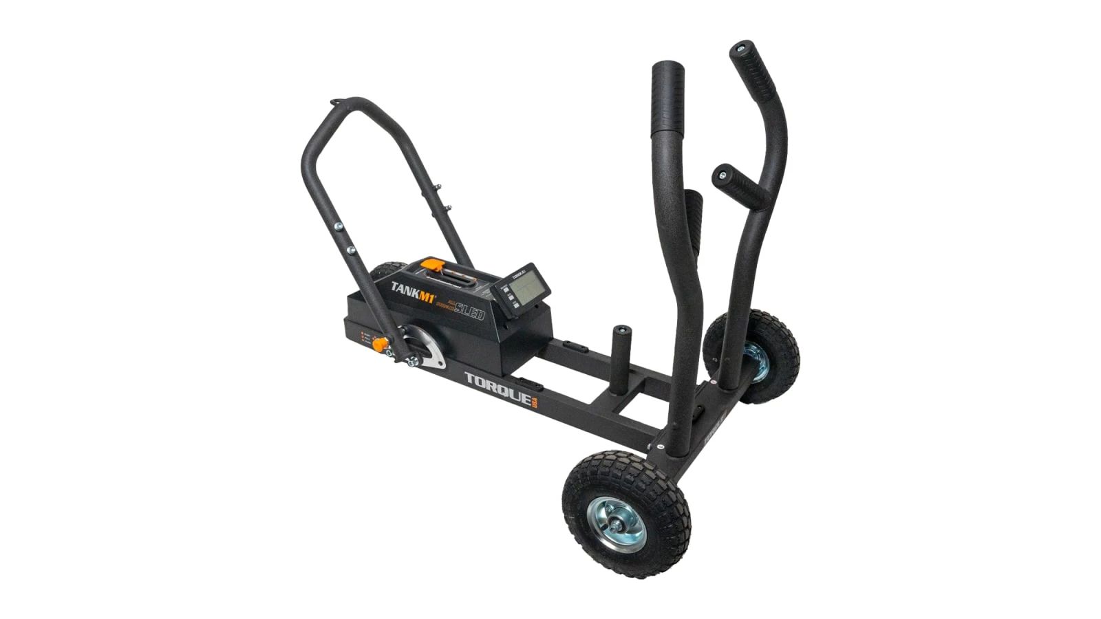 The new and improved TANK M1-102 from Torque Fitness includes all the best features of the original model while introducing a new interactive console option for real-time training data, as well as a larger, redesigned tow bar for more optimal pulling/towing positions. Customers can also select Torque’s new dumbbell cradle attachment, which enables the quick addition of DBs pairs (up to 40 LBS in total) for extra traction for the front wheel.