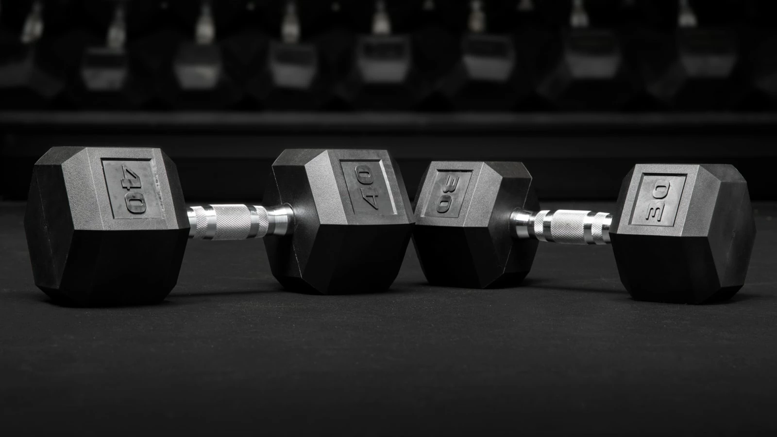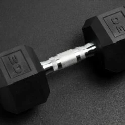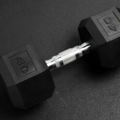Sold in pairs, these Poly Hex Dumbbells are available in increments from 5 LB up to 50 LB, each with a weight tolerance of +/- 3%. The durable design includes solid steel heads wrapped in a NBR (rubber) and PVC (vinyl) overmolded injection mixture. This material is slightly harder than that of our standard Rogue rubber hex dumbbells, and has a minimum thickness of 5mm.
